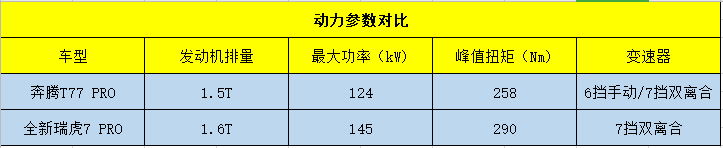 从数据来看,奔腾T77RRO在车身长度、宽度和轴距上都小幅领先瑞虎7PRO。
