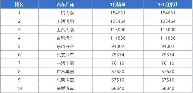 从品牌层面来看,吉利汽车在1-2月所交出的成绩为12.1万台,而大众品牌的成绩为23.2万台,如果均摊至上汽大众、一汽-大众两家旗下的大众品牌,意味着1-2月它们的成绩要比吉利的12万台略差。而汽车厂商层面,虽然一汽-大众的1-2月累计销量为20.63万台,但之中包含了奥迪的6.19万台,捷达的2.27万台,也就意味着一汽-大众旗下的大众品牌销量,只有12.1万台,和吉利汽车处于相同水平。