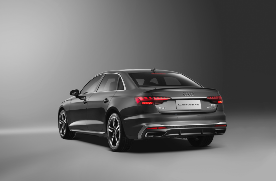 来到车尾,新款奥迪A4L变化并不是很大,整体视觉感受向A6L靠拢。两侧尾灯由一条镀铬饰条相连,相比现款车型要更加精致。比较惊喜的是,新车排气为双边双出的“真排气”,和目前大多数奥迪新款车型有所不同。
