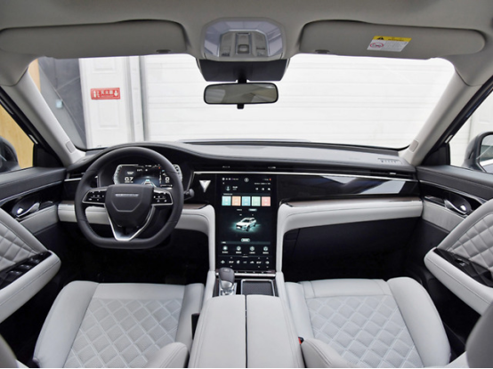 内饰部分,新车采用环抱式驾舱设计,搭配中控台简洁的线条,看起来极具层次感。新车还配备三辐式平底多功能方向盘,搭配15.6英寸竖向中控液晶屏以及12.3英寸全液晶仪表,带来一定的科技感。新车的车门饰板以及座椅等处均采用了菱形格元素,使整体质感得到很好地提升。此外,该车还搭载了零重力座椅、女王副驾座椅等配置,进一步提升该车的乘坐舒适度。