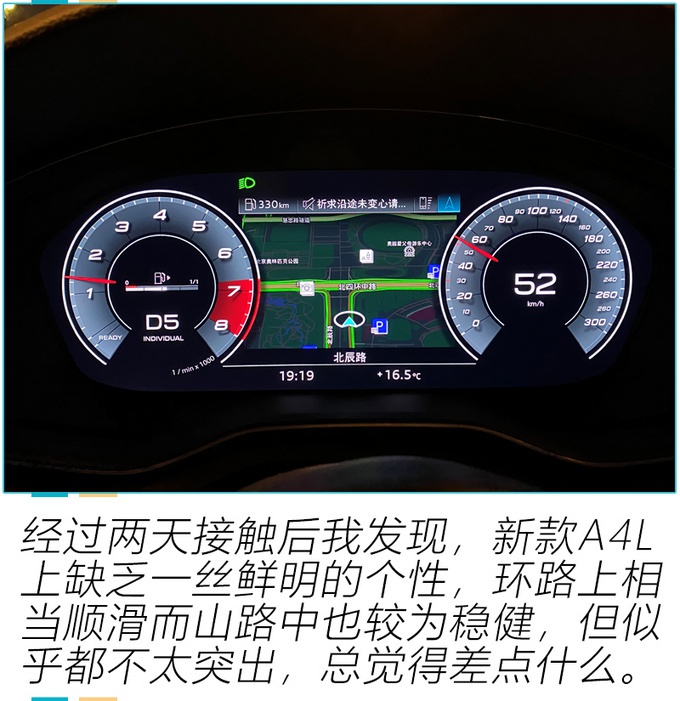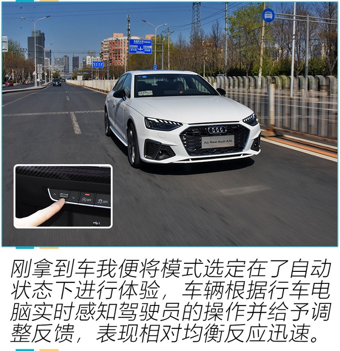 回到最开始的那个问题:穿上“运动装”的奥迪A4L,是不是放弃了原有的舒适性优势呢?或许试车前这个问题的答案就已经在我脑海里了。不得不说新款奥迪A4L在动态方面的表现,对它自己来说是完成了一次蜕变,更灵敏的响应,更直接的回馈都颇为讨喜,但对于一台A4L来看,各方面的表现还是均衡为先,这才是奥迪最走量的中型轿车应该有的产品力。如果您正在选购一台德系中型座驾,不妨等奥迪新款A4L上市之后再做决定。