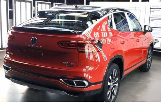 侧面来看,新车采用非常动感的轿跑SUV设计风格,尾部方面,该车采用了造型动感的LED光带式尾灯,科技感十足。此外还配备了层次感分明的后包围,结合双边四出的镀铬排气,使得尾部看起来非常霸气。此外,我们看到该车尾部挂有TAYRON X标志,预示新车将被命名为探岳X。