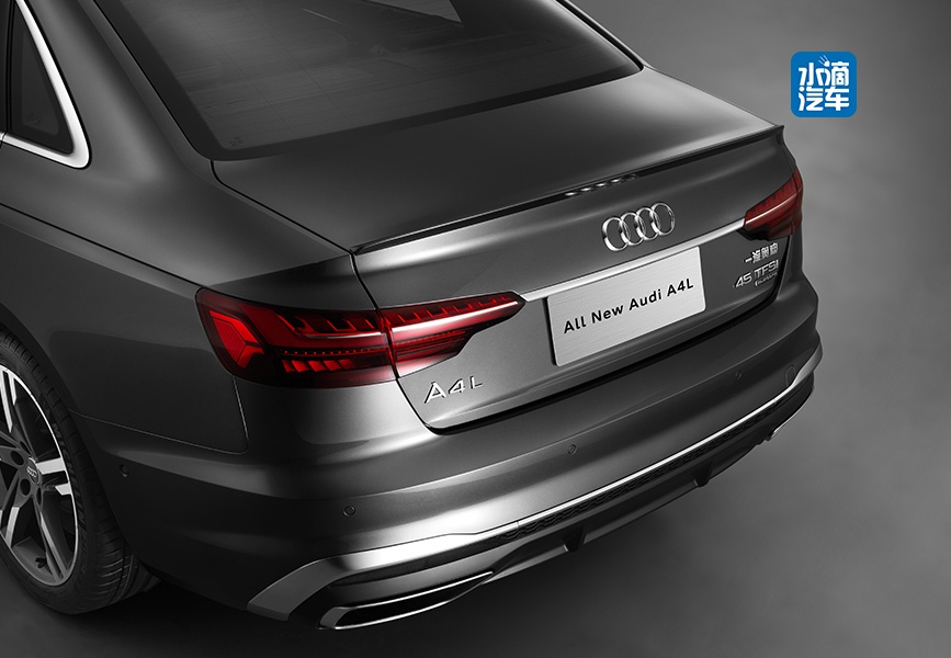 全新奥迪A4L针对车侧造型的改动并不大,但尾部设计惹人注目。尾灯组采用全新的造型设计,与前大灯组呼应。微微上翘的鸭尾设计结合下包围,以及双边单出大尺寸镀铬排气,使整车运动感更加纯粹、扎眼。