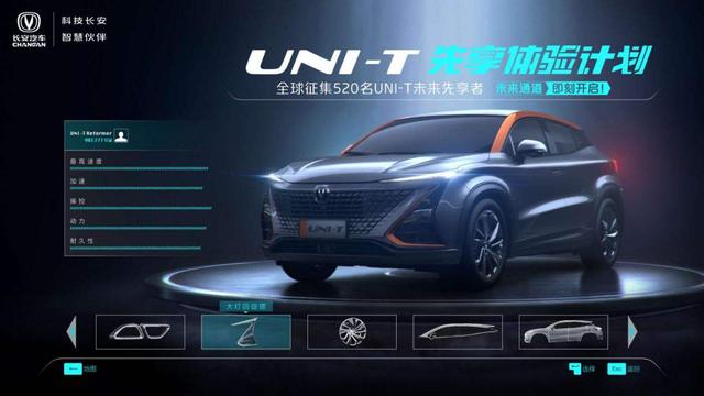 近日长安汽车宣布启动UNI-T先享体验计划,用户只需登录长安汽车官网或长安汽车京东旗舰店,参与该活动,即有机会成为先享体验者,名额限定为520名,如果你有幸成为这520人之一,那你可以在UNI-T上市前完成提车,并且能够自由选择心仪配置,由厂家打造一对一的专属定制座驾。