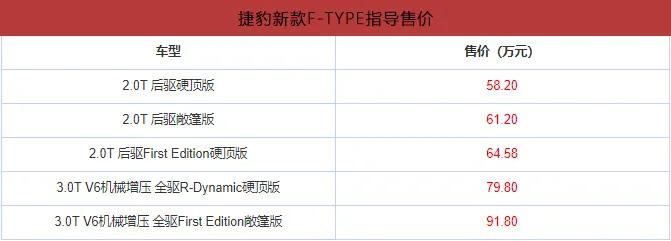 售58.20-91.80万元捷豹新款F-TYPE上市