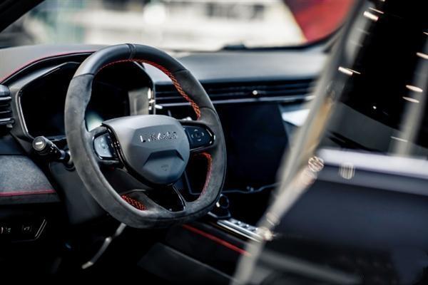 内饰的整体设计采用了领克家族式最新一套的设计语言,并提供桶型赛车座椅,配合专属的红色安全带,在座椅头枕处还配备了红色刺绣的limited edition 限量版标识。同时,方向盘也是Nubuck时间限量专属方向盘,有着近似翻毛皮的触摸效果,握感很棒!另外,还配置了独有的金属油门和刹车踏板,等等这些细节,无不体现出它时间限量版的高端所在。