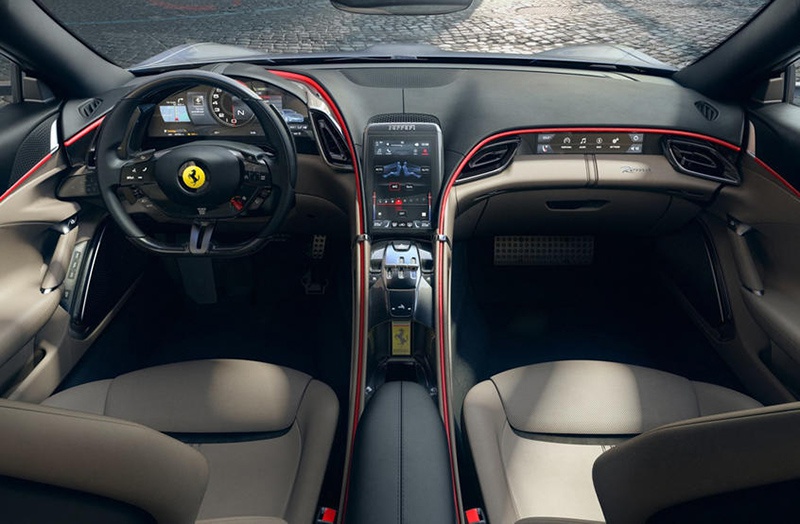 内饰方面,Roma保留了一些传统机械按钮,增添了车内的复古气息。采用全新样式三辐式方向盘、16英寸电子液晶仪表盘、多媒体触控屏等配置,增添了内饰科技感。动力方面,新车采用经典的3.9T V8发动机,最大功率620马力,峰值扭矩760牛·米,传动系统匹配8速双离合变速箱,0-100km/h加速时间仅需3.4秒。