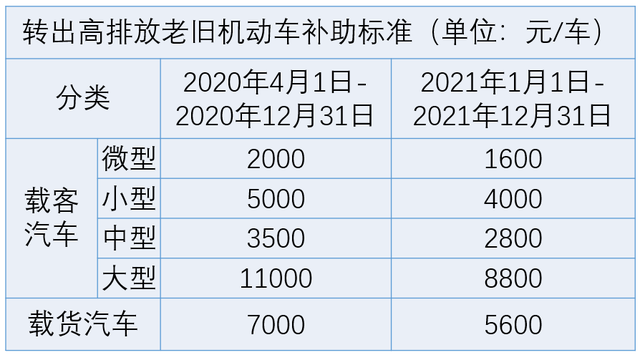 从表格中可以看出,2020年主动报废的补贴根据车型的不同可享受4000-22000元的补贴,主动迁出的补贴为2000-11000元。而此次补贴政策也可以用一句话简单概括:主动报废比主动迁出拿的补贴多,今年申请比明年申请拿的补贴多。