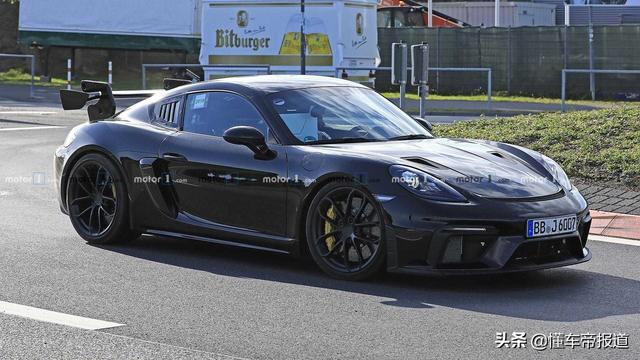 近日,海外媒体曝光了一组保时捷718 (配置|询价) Cayman GT4 RS谍照。据悉,新车将拥有接近500Ps的最大马力。718 Cayman GT4 RS是基于718 Cayman GT4打造而来,超大尾翼和大尺寸后扰流板像是让敌人闻风丧胆的利器,黄色的卡钳更有战斗气息。另外,在引擎盖上还增加了两个进气口,来保持发动机的性能稳定性。