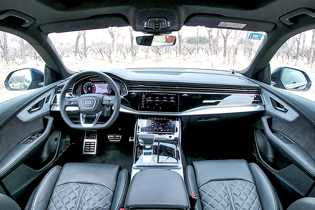 Q8的45 TFSI车型搭载2.0T发动机,而我们这台55 TFSI则采用了3.0T发动机搭配48V电动机的组合。发动机最大功率340马力,峰值扭矩500牛·米,官方0-100km/h加速时间为6.2秒,实测还能更快。对于一台中大型SUV来说,这样的成绩不错,也足够日常使用了。