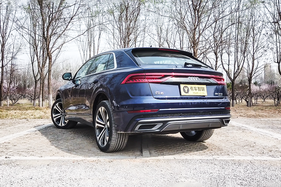 车侧线条十分流畅,尾部和普通溜背式SUV有所区别,Q8车顶是在C柱之后开始大幅度的下溜,这样做的好处就是不会影响后排头部空间,而实际体验中也的确如此。