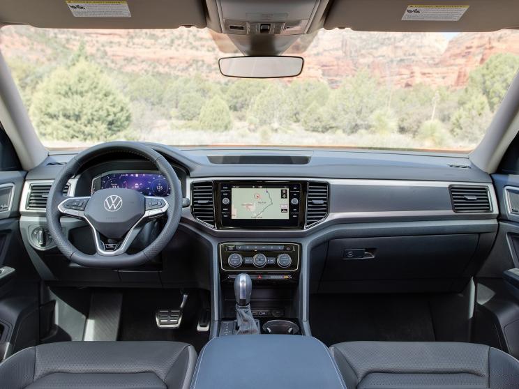 内饰方面,新款Atlas R-Line车型保留了普通版车型的造型,看上去比较稳重。12.3英寸全液晶仪表盘和全新造型的方向盘设计,为车内增添一丝科技感。同时,方向盘上的LOGO也换上了最新的设计。