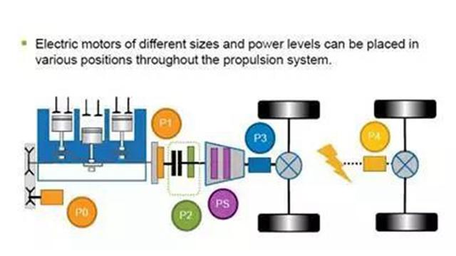 既然ZF第四代8AT是为混动研发的,还是需要先说一下现在主流的混动布局,其根据电机位置可以分为P0、P1、P2、P3、P4结构。经过各大厂家几年的研发,各大厂家都认为装在变速箱内部的P2结构是最优的方案,其不光拥有更小的体积、更少的零部件(零件更少,故障更少),最重要的是其并不会影响车辆底盘结构,这对厂家尤为重要。