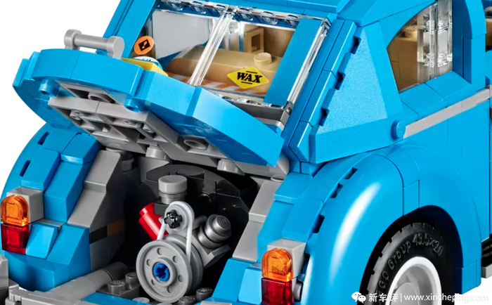 如果你对甲壳虫还带有情怀,那么“乐高”这种形式就是一个好方法,这款车型以1960年的甲壳虫为原型,乐高稍微加以改装,便有了这款以海滩、冲浪为主题的模型。这款模型使用了1960年车型的Brunswick Blue配色,搭配白色轮毂。前舱的备胎和后舱的风冷四缸发动机都有还原。