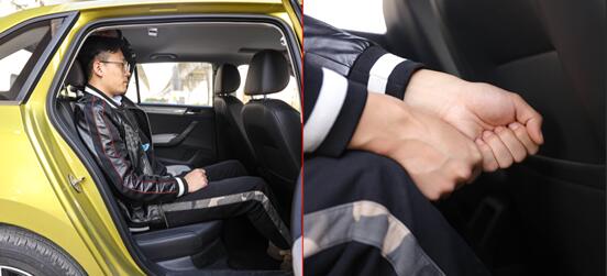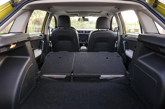 在驾乘空间方面,笔者身高1.8米,在调整好前排坐姿后来到后排空间,笔者的腿部空间仍有2拳半+头部有1拳半的空余量,表现非常充裕,有种MPV的感觉。另外该车的窗线比较低,行车视野很好。
