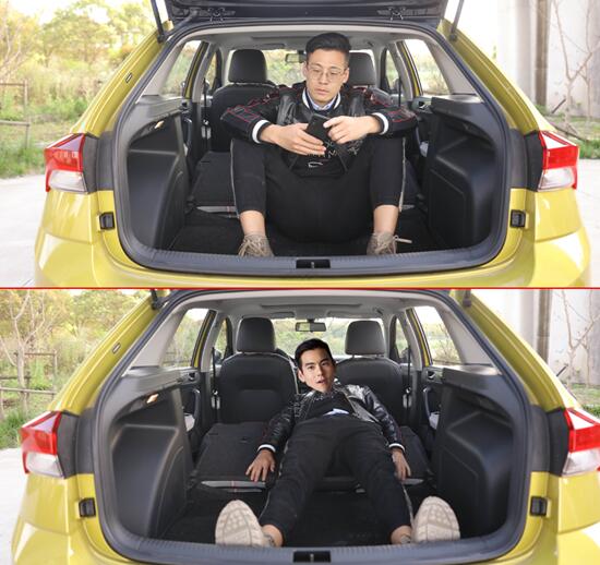 为了让大家更直观地看到全新昕动的后备厢空间,笔者分别用坐姿和躺姿为大家展示。在后排放倒的情况下,身高1.8米的小伙子躺下仅多出一个头部距离,纵深非常大。如果跑长途,铺上垫子也可以作为临时休息的铺位,或者坐里面垂钓也未尝不可。