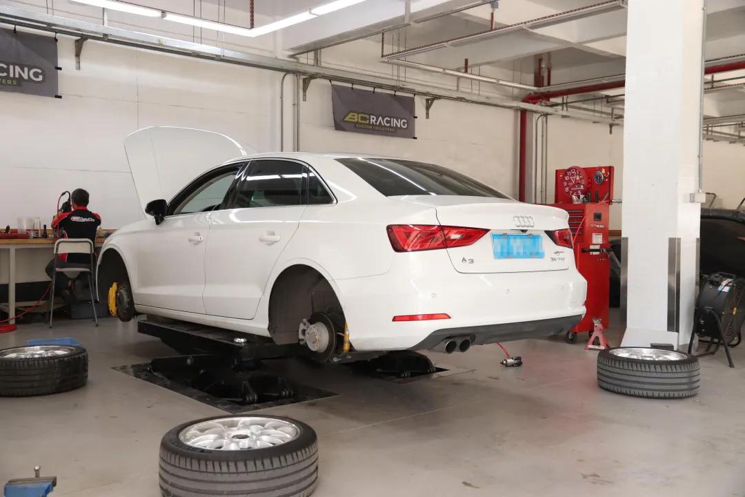 因为避震是专车专用,厂家根据A3的数据已经在出厂前做好预压,技师在安装前会先测量好相关数据,检查好和厂家数据是否有出入,所以说找一个靠谱的安装是多么重要。