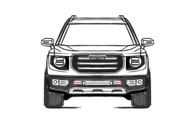 侧面造型中规中矩,突出了肌肉感,轮拱采用了常见的黑色塑料包围,并且轮拱尺寸很大,给悬架提供了较大的运动空间,侧边采用了全包围门板,防止泥巴蹭脏裤腿。黑色的门把手、黑色的倒车镜、黑色的B、C柱突出了野心风格。车顶自带行李架并且还有全景天窗。尾部造型目前尚未曝光。