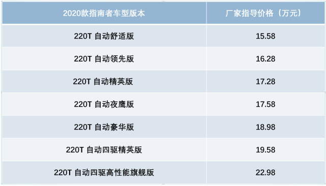 2020款Jeep指南者车型在3月底上市,7款车型的指导价区间为15.58-22.98万元,指导价与该款前保持持平。
