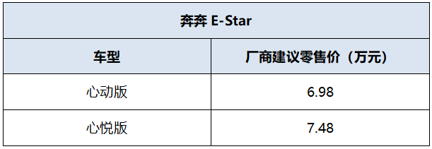4月13日,长安新能源E家族第二款新车——奔奔E-Star (配置|询价)正式在线上上市。新车共推出心动版、心悦版2款车型,官方指导价6.98万-7.48万元。