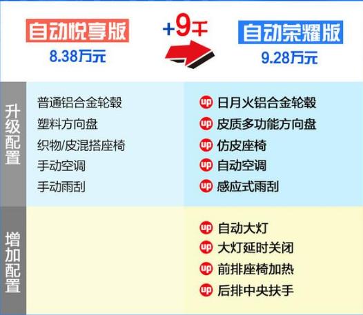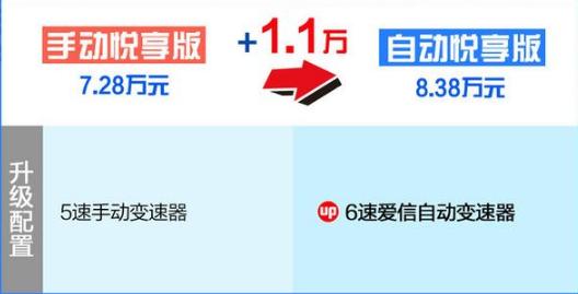 到了8.38万的自动悦享型配置变化就很少了,从车型名称就能看出来,它和手动悦享型配置一致,只是增加了爱信6AT手自一体变速箱,如果你有自动挡刚需,就选择这款车型,其余配置和手动悦享型一致。