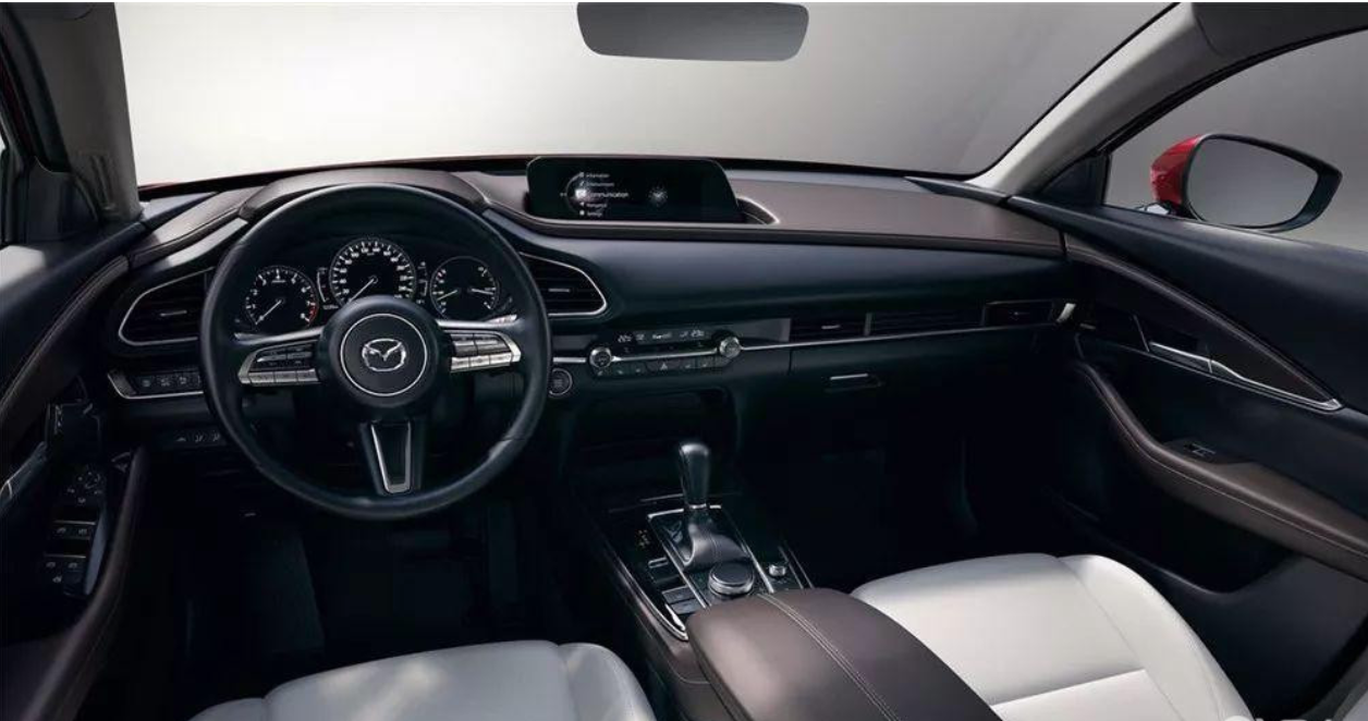 内饰方面,内饰布局同样采用了马自达全新家族化设计理念,非对称式的中控布局看起来非常时尚个性,悬浮式中控向驾驶席倾斜,配合多功能方向盘及丰富的物理按键形成环抱式设计。细节方面,包括悦联操作面板等配置同样出现在CX-30的内饰中。