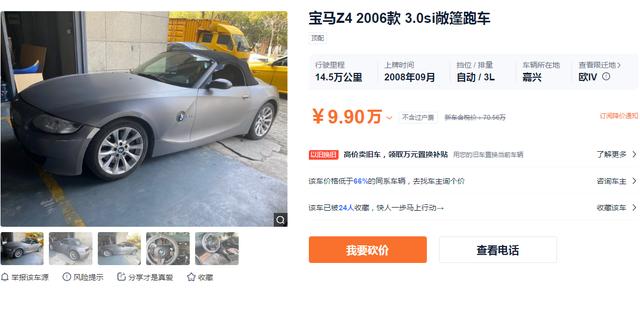 相比于前两款的"格调",第三款比较偏向性能,那就是宝马Z4的敞篷版。当年定位为高端豪华跑车的宝马Z4,运气好的话,如今10万元以内能买到2006年左右版本。不同于前两款的硬顶,当年宝马中国推出的Z4主要以软顶为主。