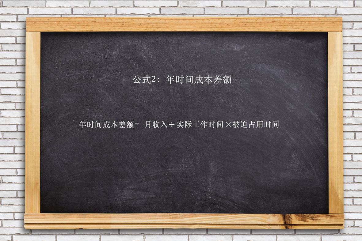 年时间成本差额=月收入➗实际工作时间✖️被迫占用时间