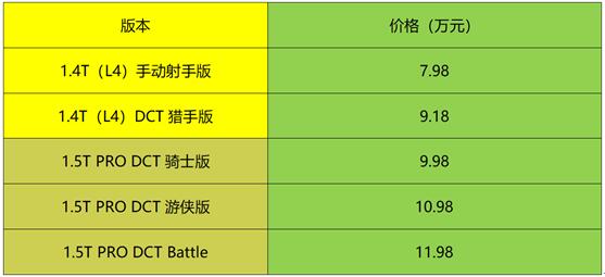吉利缤越PRO于4.15日正式上市,新车共推出5款车型。新增1.4T四缸发动机自动和手动两个版本,以及之前的1.5T三个版本,分别是骑士版、游侠版和Battle版,售价区间为7.98-11.98万元,混动版本缤越ePRO有Base、Higher、Super三个版本,售价区间为12.58-14.98万元。