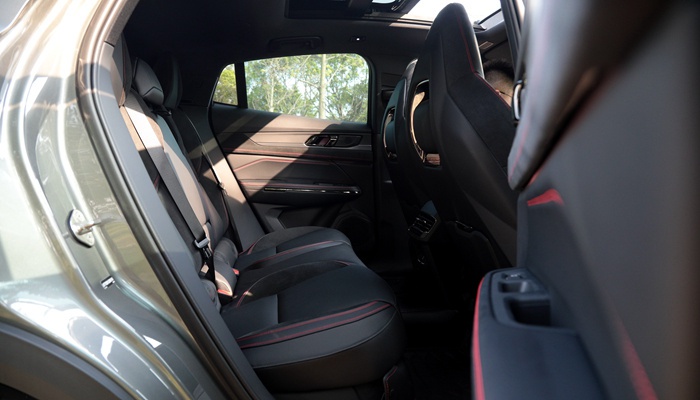 至于05的后排空间,我觉得32cm的腿部空间绝对是可以满足大部人的需求,其次大家所担心的溜背压头,05上也专门做了偷空处理,加上包裹性不错的宽厚座椅,坐起来的体感是舒服的。只不过由于四驱车型中央传动轴的原因,领克05中间的位置可不太适合成年人长时间乘坐。