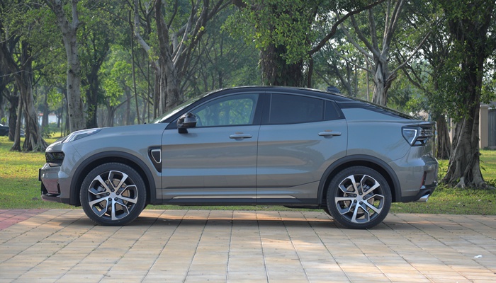 以至于这种设计的好看与否往往都在一线之隔,非常考究设计功底。那领克的设计绝对比那些只会外包给宾法设计的车企高到不知道哪里去,所以当你从领克05的车侧看过去,会发现它的驼背感并不明显,整体还是非常流畅。