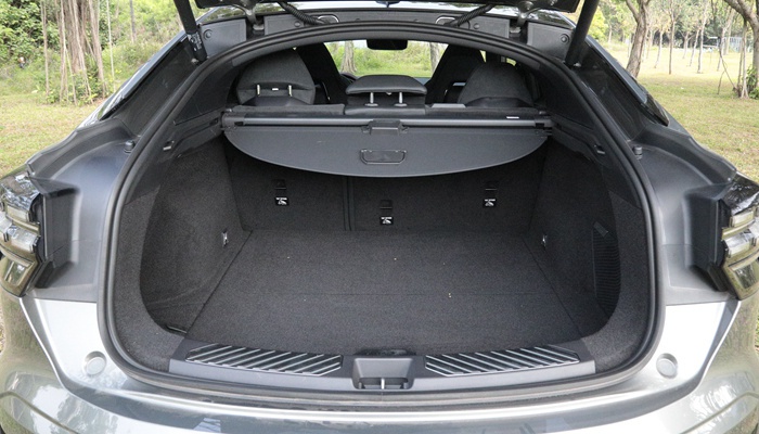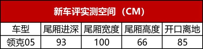 相对于乘坐空间,溜背对于尾厢空间的影响往往更大,从数据上可以看到领克05的尾厢的确会比传统造型SUV稍差(主要是尾厢高度和尾厢开口离地)。不过从实用性来说,05已经针对性地做了地板下沉,如果你再对比下同样设计的其它车型(例如长安CS85),你就会发现这个尾厢空间利用率已经相当可以了。