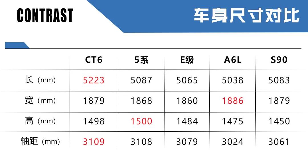 相比之下,E级、5系、A6L、S90都有各自一套成熟的豪华风格吸引着不同的消费者,但或许看惯了这些熟悉的面孔,凯迪拉克CT6的浓重美式豪华气息能够让你耳目一新。抛开见仁见智的外观,作为定位在豪华中大型领域的车型来说,尺寸及空间的比拼也是消费者感兴趣的层面。