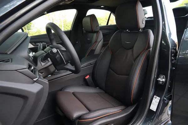 这台车的座椅是我最喜欢的部分,一台车坐得舒不舒服,是消费者很直观但又很容易忽视的配置。CT4的高配车型配的是运动型Moli真皮座椅,里面的填充物非常柔软,两侧的护翼不仅宽大,包裹性还很好,在激烈驾驶时身体不容易甩出去(相比于一般的家用车而言),高配版的座椅用了撞色的设计,有橙色的缝线点缀,支持8向电动调节以及座椅记忆,最关键的是还有前排腿托调节,无论是开长途还是日常代步,总是能找到一个最舒适的坐姿。