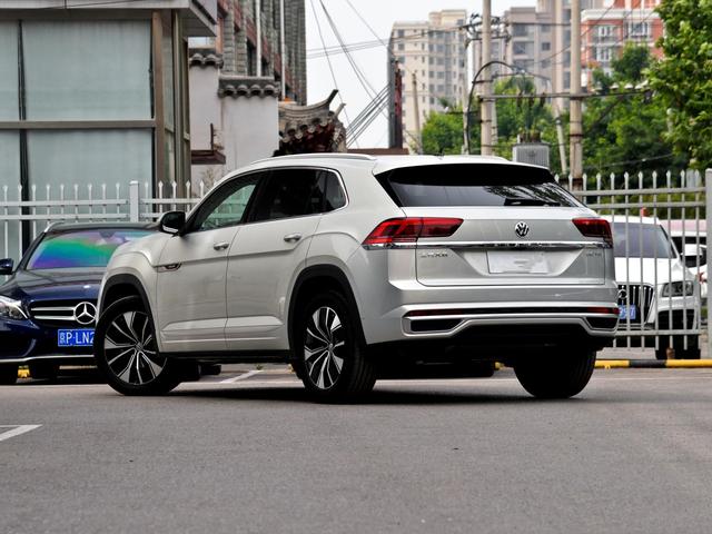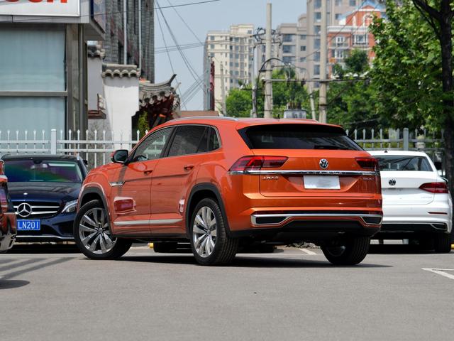 途昂X作为一款轿跑车型,它的溜背造型并没有像宝马X6那么夸张,它只是在D柱之后,便开始有了向下倾斜。我觉得这样的设计是恰当好处的,对于途昂X来说并不会显得过于浮夸,同时还有一丝丝的运动感,也更符合大众车型一贯的沉稳定位。