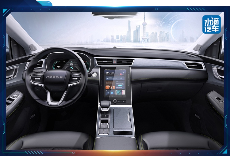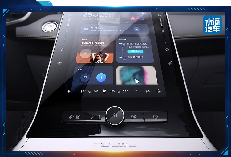 之所以讲轻奢,大部分原因是大面积屏幕的使用,一眼望去,屏幕占据了中控很大一部分面积,科技感很强,这也是自RX5诞生以来,荣威车型的典型特点。中间这块倾斜的屏幕达到了14.3英寸,采用2.5D全贴合式玻璃面板。