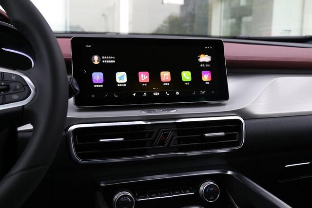 空调出风口采用了星舰尾部引擎设计风格,空调控制方式为按键+旋钮控制,按键还采用了镀铬饰条进行装饰,提升了其精致感。