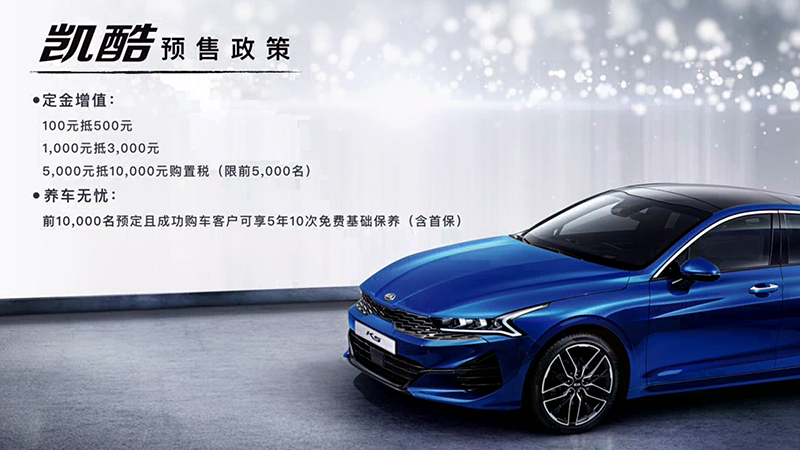 4月20日,全新一代起亚K5正式命名“凯酷”并开启预售。新车是起亚K5的第三代垂直换代车型,是基于现代起亚最新的IGMP平台开发打造而来的首款量产中级车。新车将会在海外版车型的基础上,车身长度增加75mm,轴距增加50mm;并预计在9月上市销售。此前,官方已经进口200辆海外版车型,用于国内经销商店内展示用车。