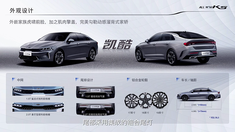 与现款在售的起亚K5相比,新车的外观与内饰变化堪称“改头换面”。在全新设计语言的加持下,新车显得更加精神。新车将根据动力的不同,1.5T车型采用鲨齿式锐利前格栅,车尾采用镀铬双边共两出的排气;2.0T车型采用麦芒型犀利前格栅,车尾双边共四出的排气。