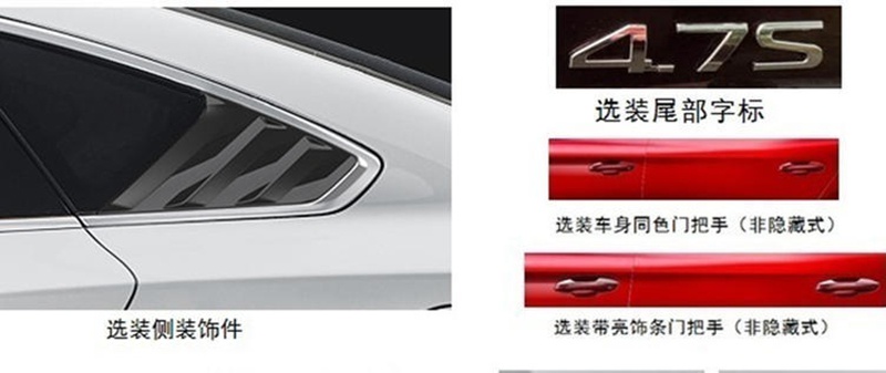 前脸中网不是此前申报图中的横向格栅,而是类似“龙鳞式”格栅,格栅内部由满天星镀铬中网填充,车身侧面和车尾部分新车则基本维持了此前的样式,车门把手可选隐藏式和常规的门把手样式。车尾部分采用隐藏式的排气管设计。出现了4.7秒的可选尾标字样,4.7S的字标对应的应该是百公里加速时间。