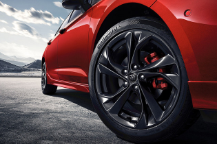 车身侧面,新车采用了前后断开的腰线设计,车顶还采用了黑色处理,看上去十分动感。轮圈方面,搭配17英寸双五辅黑色轮圈,同时还采用了一套红色的刹车卡钳,进一步增加新车的运动属性。车尾灯组设计与前大灯组相呼应,中央被一根镀铬饰条贯穿,一体感较强。此外,车尾还新增了黑色小鸭尾式后扰流板。