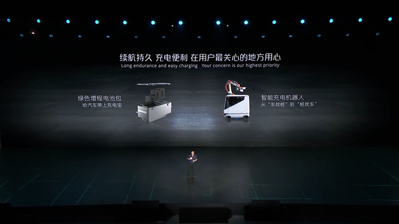 在2019年12月19日的爱驰U5上市发布会上就透露出,其将采用智能充电机器人来转变从“车找桩”到“桩找车”。如今,这款智能充电机器人被命名为CARL。