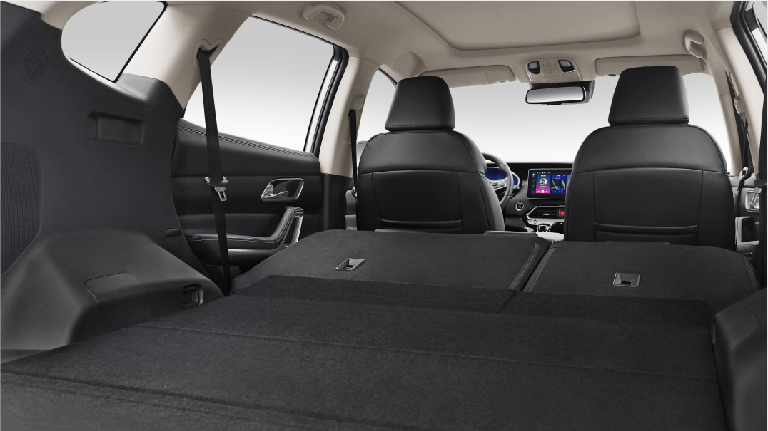 除了在乘坐空间上表现出色,嘉悦X7还提供便利的储物空间。后排座椅放倒后几乎完全平整,容积可拓展至1358L,充分满足家庭用户载人载物的需求。