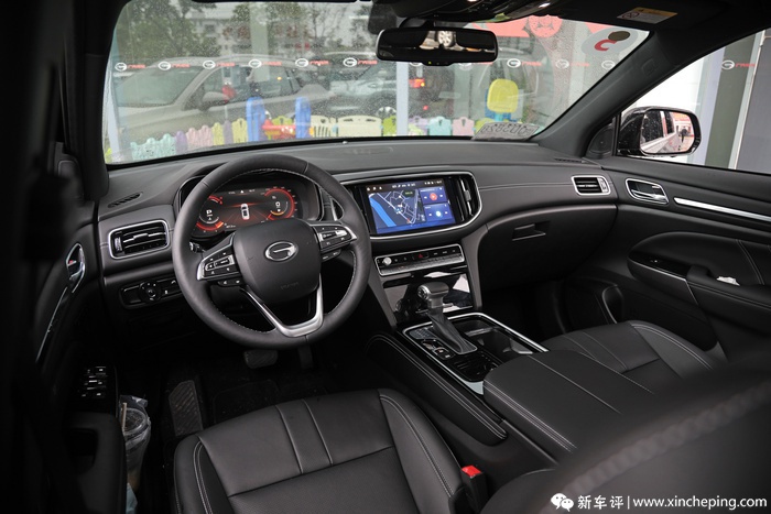 传祺GS8S的内饰与中期改款的GS8是同步的,别看外形那么硬朗刚强,走进车内还是能感受到一些温馨气息,总体风格变得更加流畅,也更现代了。在中控台材质方面,GS8S用上了大面积的皮革软质材料覆盖,视觉效果和触感都比以往的木纹面板更好。再如方向盘的造型,和新款GS5相同,轿车化的设计看上去不那么呆板,并且握感非常粗壮。相比旧款车型,上面的多功能按键无论是布局还是按键阻尼都变得更合理更好用了。