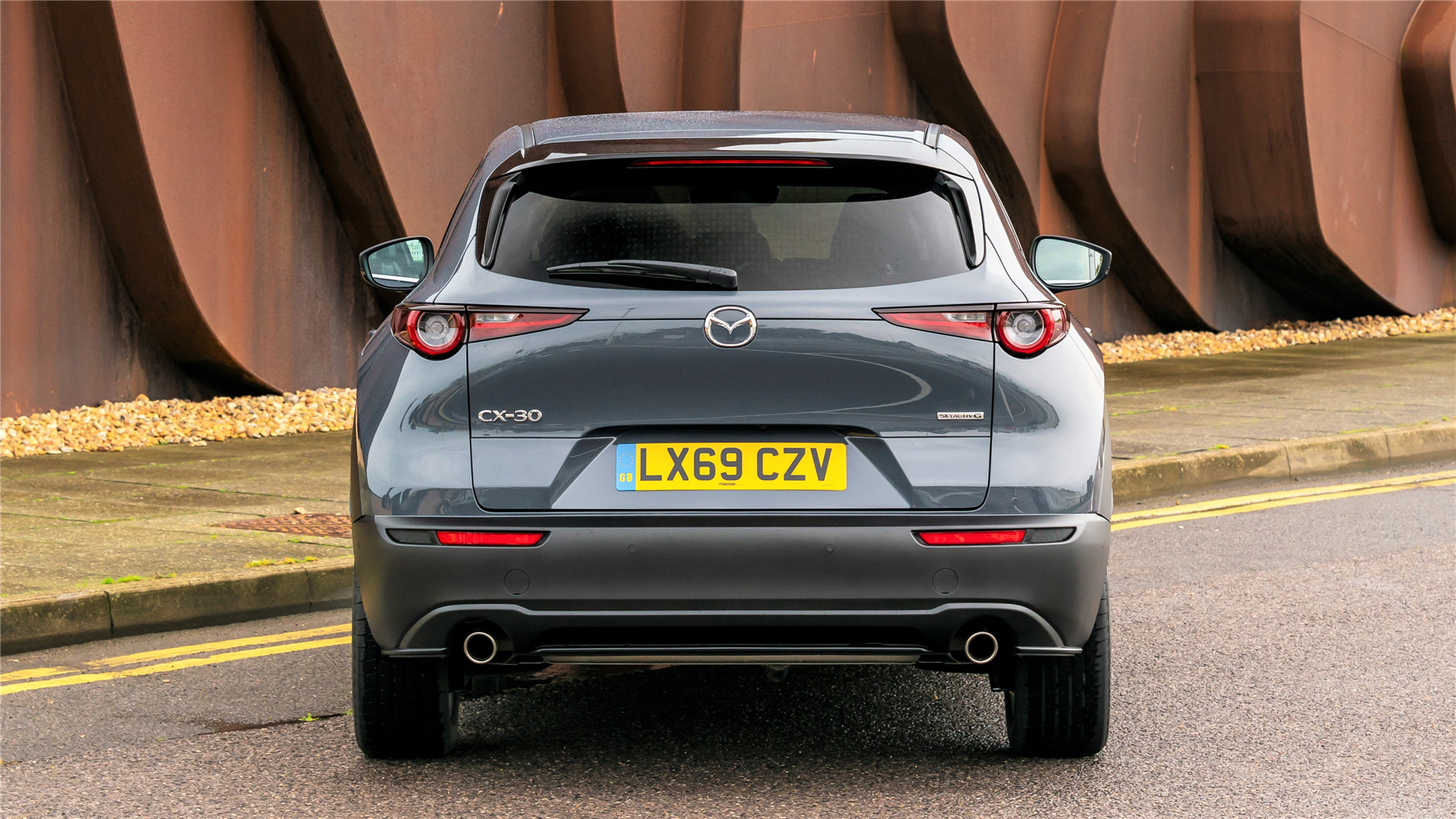 CX-30的尾部设计非常性感,柳叶形的LED尾灯布置在高位,配合上翘的造型绝对对得起“翘臀”二字。为了配合尾部向上的视觉效果,下方的保险杠全部采用黑色设计;为了体现运动感,双边单出的实体排气自然不会缺席。