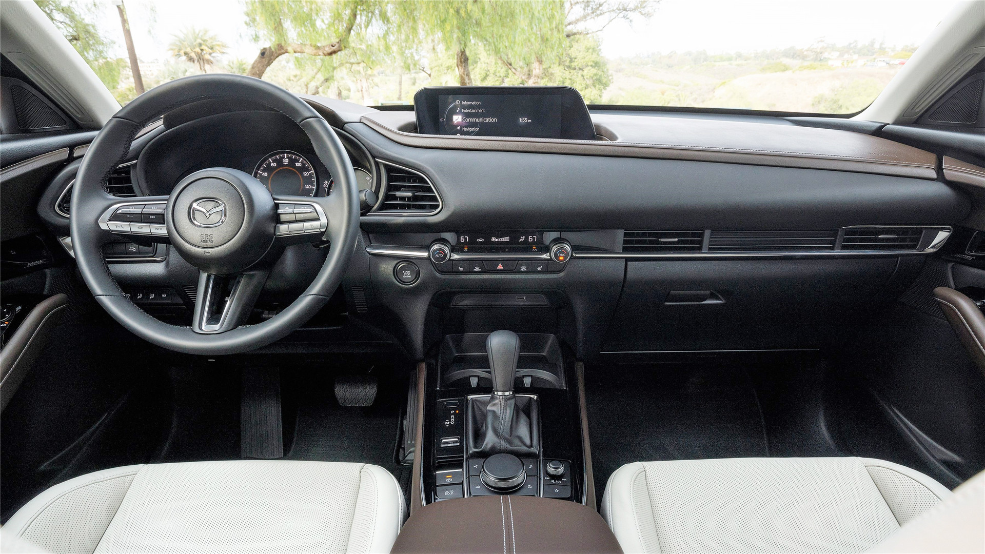 CX-30的内饰风格与马自达3保持了高度一致,这套内饰也是马自达最新的设计,以简约、纯粹的驾驶为主导,化繁为简。保留空调、多媒体的实体旋钮,最大程度提升驾驶员操作的便利性。而且为了提升车辆行驶时的安全性,马自达的8.8寸中控屏甚至不支持触控操作,这种逆势而为的产品思路或许就是马自达的品牌哲学吧。