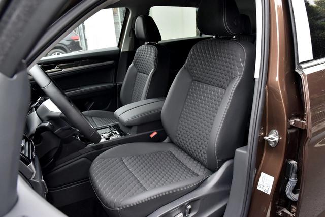 内饰依然使用了大众家族化的设计语言,而方向盘造型以及空调出风口为途昂X的全新设计,整体内饰还是给人一贯的"大众味儿"。此外,内饰面板上还增加了仿碳纤维的装饰面板。