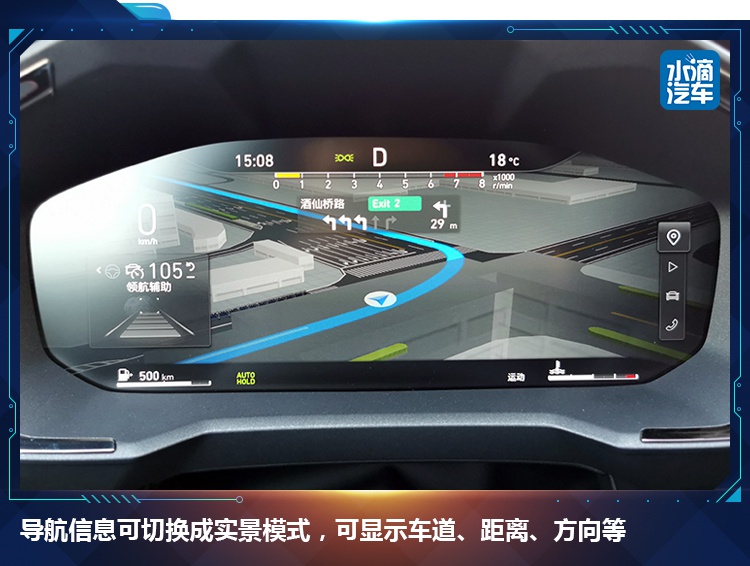 右侧除了按键还支持滑动触控,主要控制导航、多媒体、行程等信息。HUD显示内容也是通过右侧按键控制,抬头显可以显示很多内容:转弯距离、车道信息、车速、辅助驾驶模式等等。