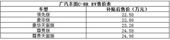 经过新能源领域新一轮的洗牌,很多当初风光无限的造车新势力黯然离场,而传统汽车厂商迈着稳健的步伐开始入场,这其中就包括以可靠性著称的丰田,凭借其在汽车电动化领域二十三年的技术积累,丰田于2020年4月22日,推出旗下首款纯电SUV——广汽丰田C-HR EV,新车共提供五款车型,补贴后售价区间为22.58-24.98万元,NEDC续航里程400km,在同级中优势明显。