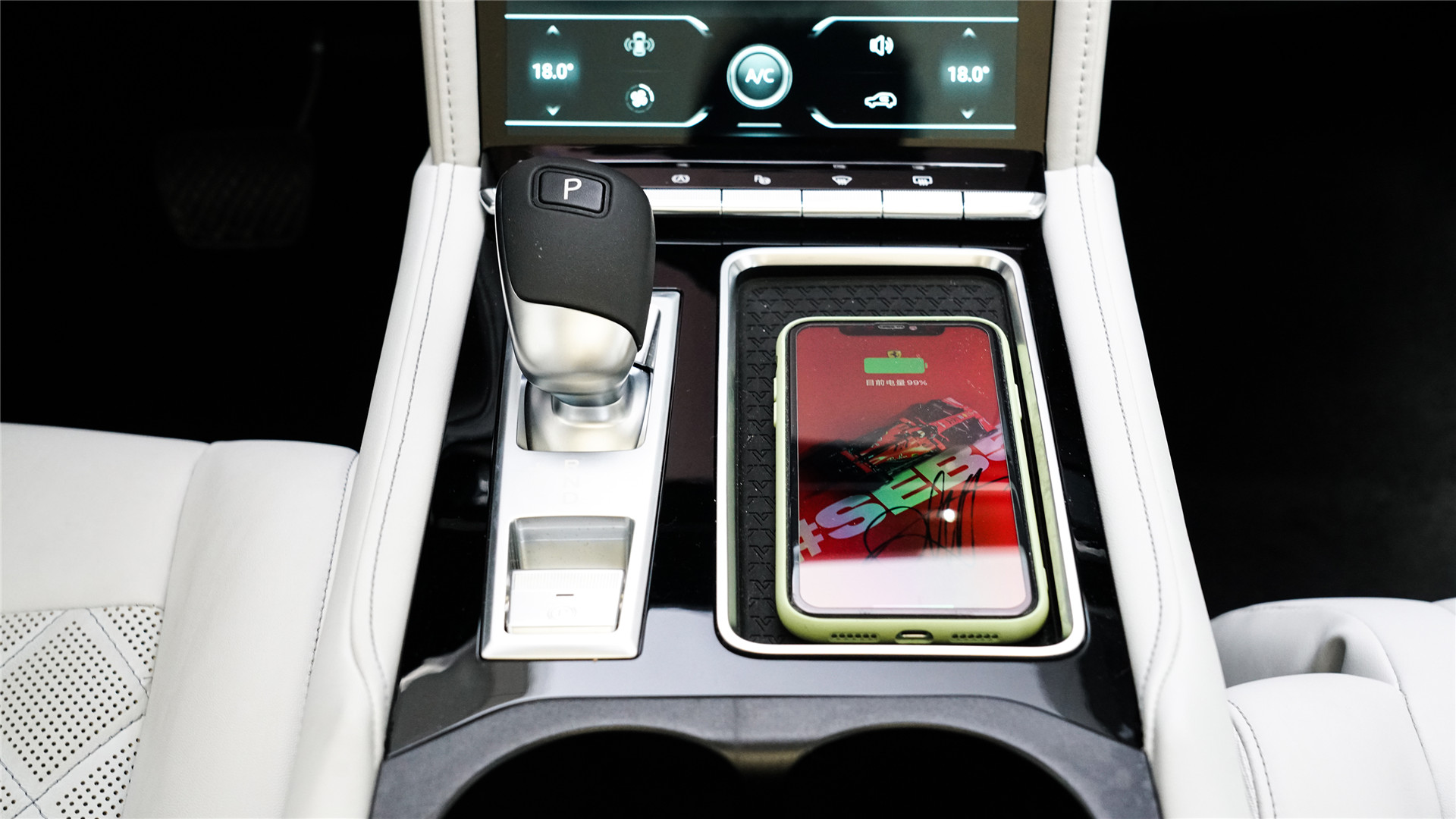 启辰星的挡把设计十分小巧,非常符合现在小而美的审美标准。不过金属材质的外边框,在阳光下就会显得有些刺眼了。而边上的无线充电在2020年的今天,更是一个非常实用的功能,同时在充电功率方面也十分不错。